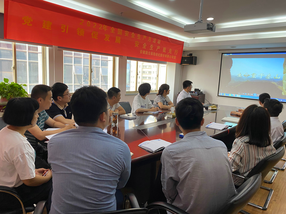 6月1日下午,國元保險(xiǎn)經(jīng)紀(jì)2022年安全生產(chǎn)月系列活動(dòng)第一波正式拉開序幕!首先,公司全體員工共同深入學(xué)習(xí)了習(xí)近平總書記關(guān)于安全生產(chǎn)的重要論述,圍繞公司安全發(fā)展進(jìn)行交流和探討,為公司做好安全生產(chǎn)工作指明了方向、提供了遵循。接著,公司領(lǐng)導(dǎo)認(rèn)真組織學(xué)習(xí)安全生產(chǎn)十五條措施,深刻領(lǐng)會(huì)安全生產(chǎn)十五條措施的重要意義。安全生產(chǎn)十五條措施是針對當(dāng)前安全生產(chǎn)領(lǐng)域的新情況新問題新風(fēng)險(xiǎn)新隱患提出的,這些措施貫穿了習(xí)近平總書記關(guān)于安全生產(chǎn)的重要指示精神,對于公司強(qiáng)化安全生產(chǎn)責(zé)任落實(shí)、堅(jiān)決防范遏制重特大事故具有很強(qiáng)的針對性和指導(dǎo)性。最后,公司全員集中觀看了《生命重于泰山》電視專題片,通過深入學(xué)習(xí)直面風(fēng)險(xiǎn)、樹牢理念、強(qiáng)化責(zé)任、健全體系、狠抓落實(shí)五個(gè)主題片段,充分認(rèn)識到“安全生產(chǎn)無小事,防微杜漸是關(guān)鍵”,進(jìn)一步提升安全生產(chǎn)風(fēng)險(xiǎn)防范意識。